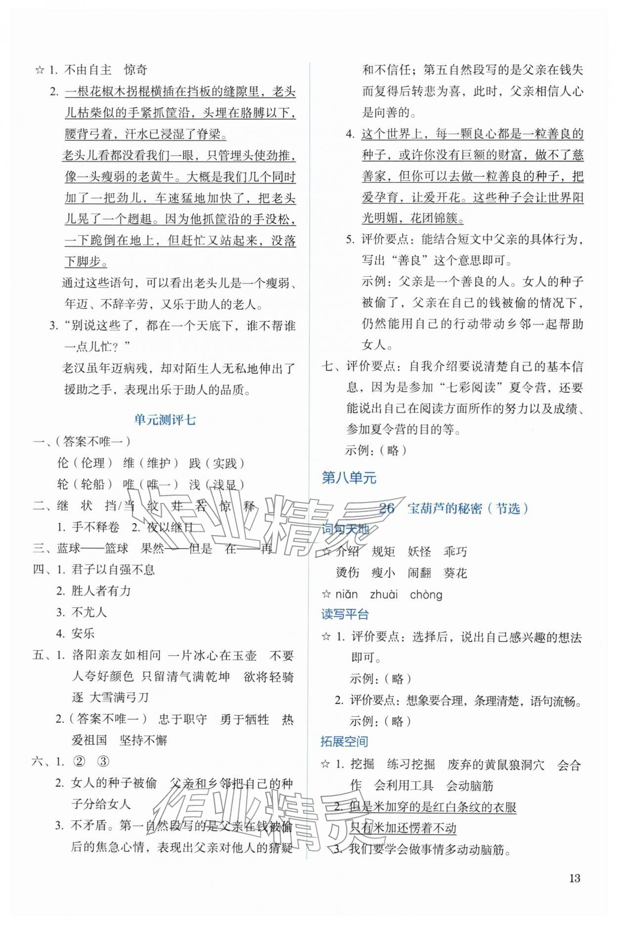2026年人教金学典同步解析与测评四年级语文下册人教版第13页