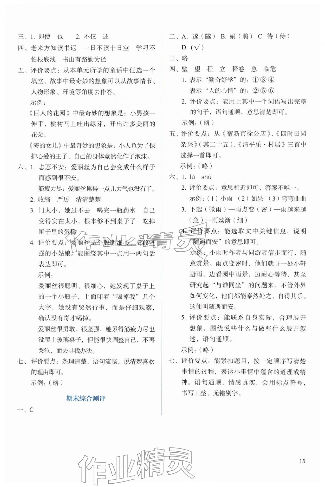 2026年人教金学典同步解析与测评四年级语文下册人教版第15页