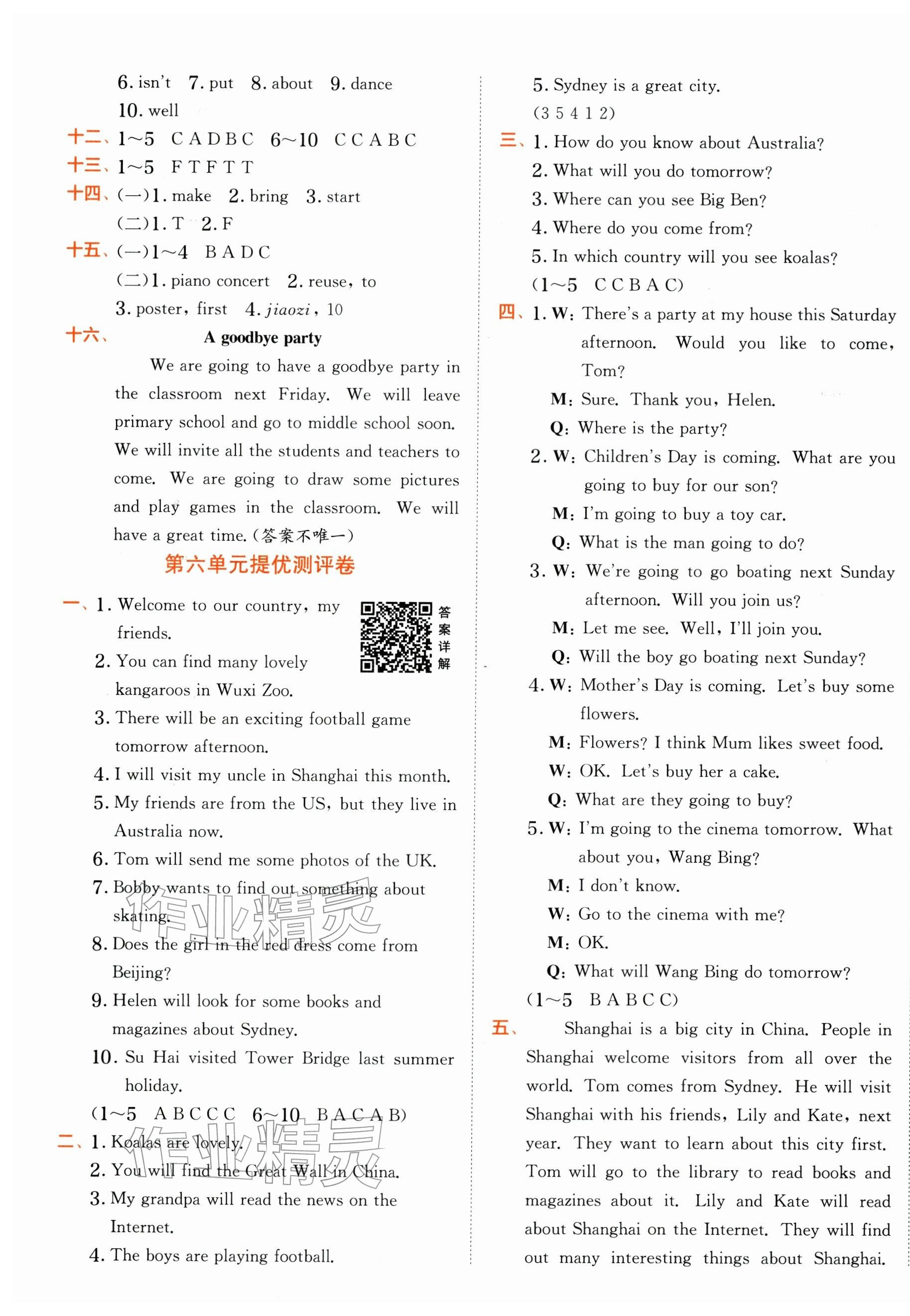 2026年实验班提优训练六年级英语下册译林版参考答案第39页