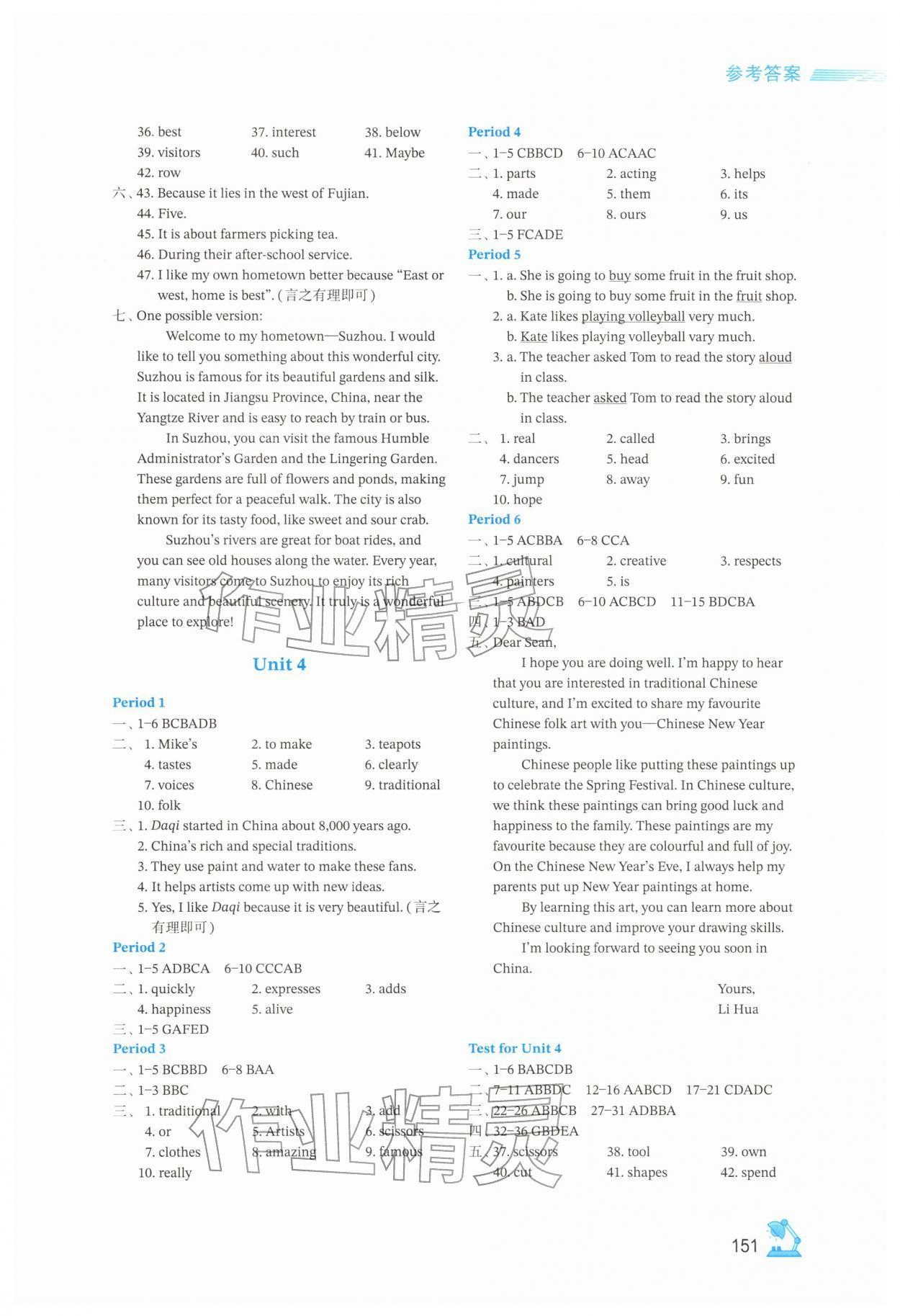 2026年学习与评价江苏凤凰教育出版社七年级英语下册译林版参考答案第4页