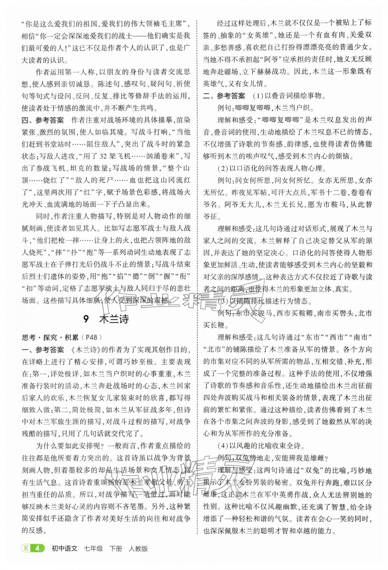 2026年教材课本七年级语文下册人教版参考答案第4页
