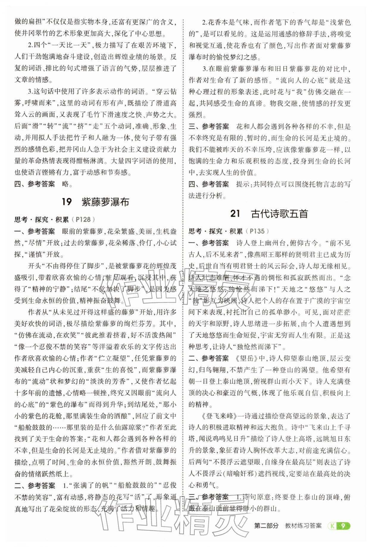 2026年教材课本七年级语文下册人教版参考答案第9页