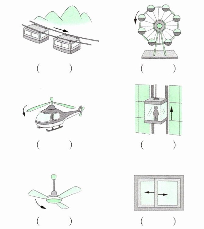 1. 下面现象中是平移的在括号里画“√”,是旋转的画“○”。
