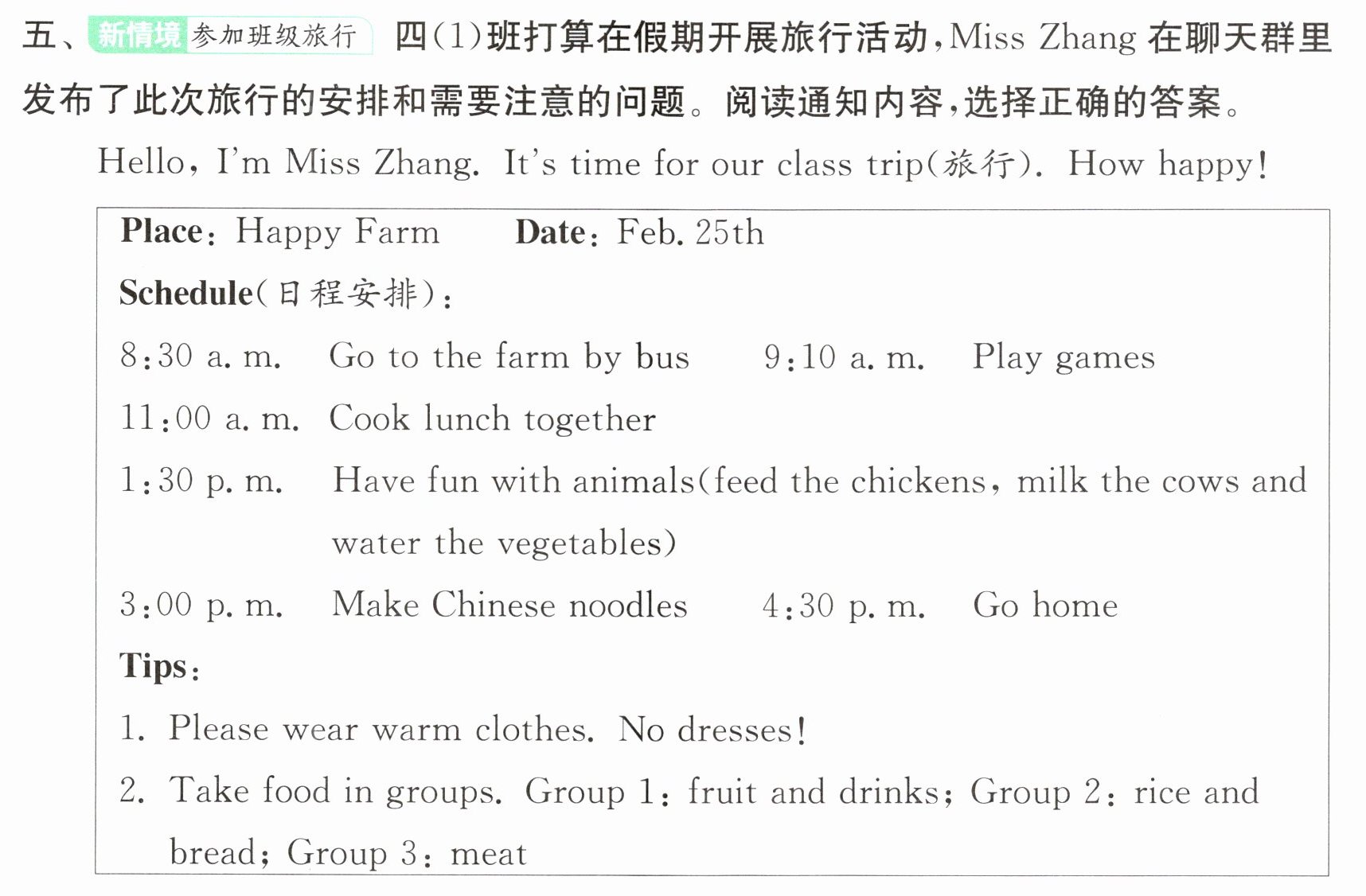 ( )2. During the class trip, the weather may be(可能是) ______