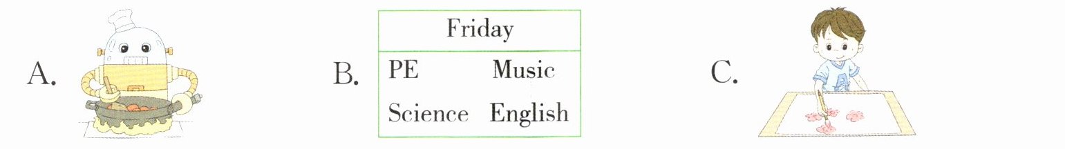 This is today's class schedule.I like Friday. We have PE, Music, Science and English on Friday. I like Music very much. At weekends,I often sing songs with my friends.