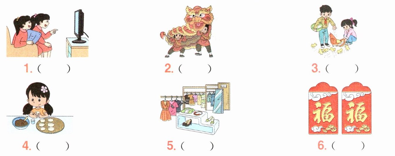( )5.人们购买新衣服和食物。在中国新年之前他们还会做什么?