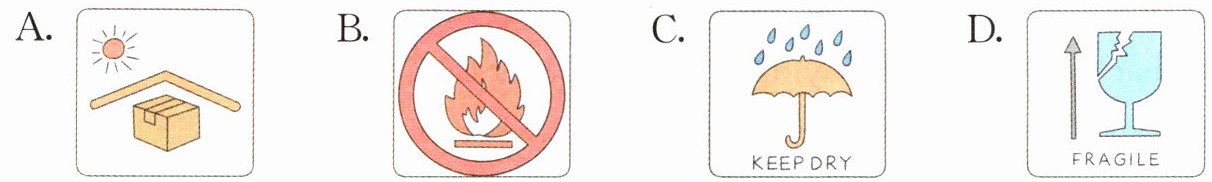 ) This sign is a warning. It means things inside the package burn very easily. For your safety, you should keep it away from fire.