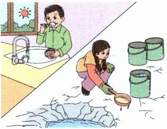 2. A:看!那个男孩正在洗他的脸/手。(此处根据图片而定,face或hands)