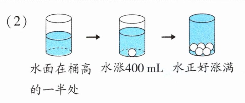 (2)4 提示:放入一个球水涨400毫升,放入5个球水正好涨满桶的一半,即桶的一半的容量是5×400=2000(毫升),2000毫升=2升,则桶的容量是2×2=4(升)。