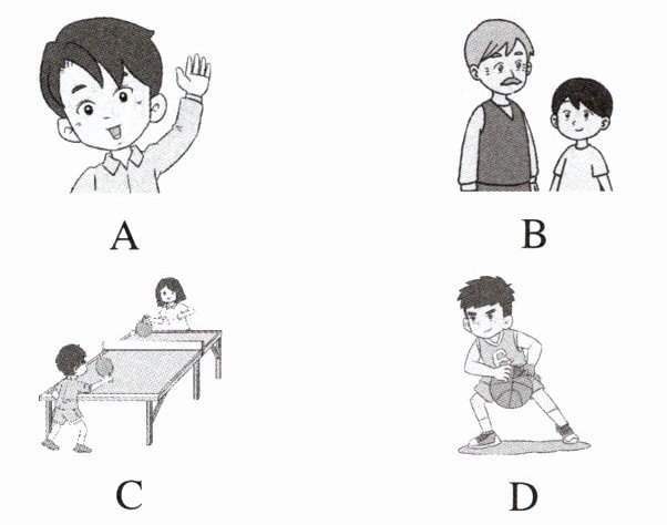 In the next photo, there are two boys. They are my friends, Timmy and Peter. They are playing basketball happily. Timmy is a basketball fan. Peter loves basketball, too. But his favourite sport is football.