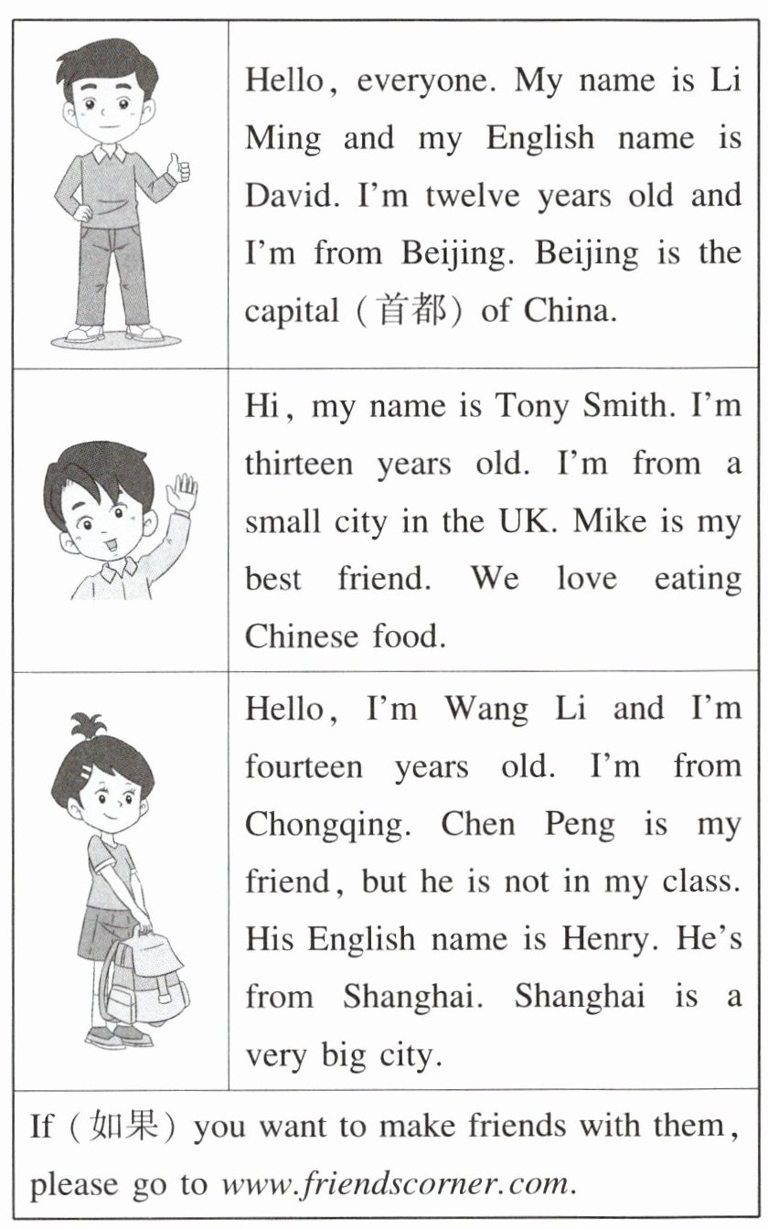 26.A 细节理解题。根据李明简介中的“I’m twelve years old”可知,李明12岁,故选A。