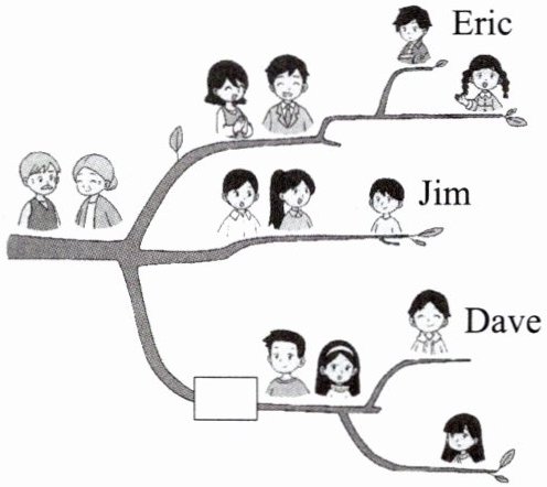 他们的女儿是我的妈妈凯特。她42岁。尼克是我的爸爸。他也42岁。山姆叔叔39岁。他有一个儿子。杰克叔叔36岁。他和玛丽婶婶有一个儿子和一个女儿。我有一个妹妹。她5岁。她和杰克叔叔的儿子戴夫同岁。