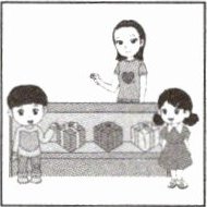 3. He is an old man with a white beard. He likes wearing red clothes. He always gives presents to children at Christmas.