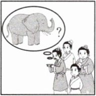 矮个子盲人摸到了大象的腿。他说:“你们都错了!大象是一根柱子。”