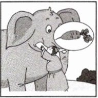 The fat blind man touches the ivory (象牙) first. He says, “Oh, I see! The elephant is big, thick and smooth, just like the carrot.”