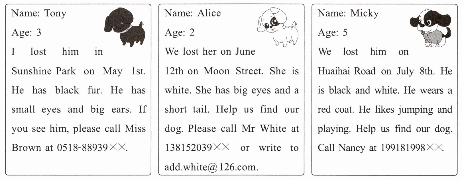 六 情境 寻狗启事 阅读寻狗启事,帮助工作人员建立档案。