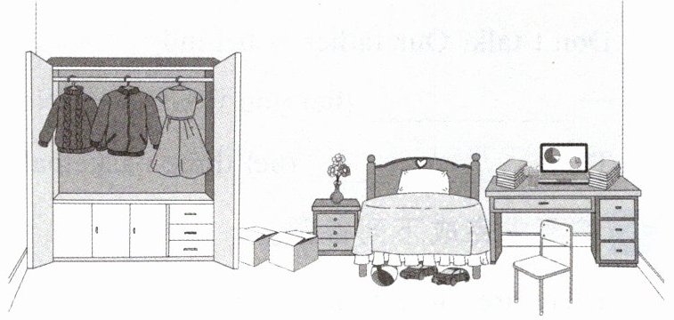 一 新考向 看图,用 be 动词的适当形式和方位介词填空,完成下列句子。