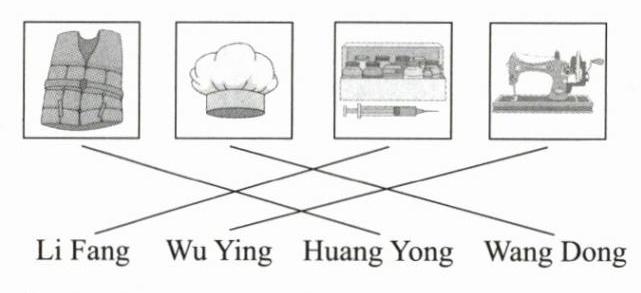 #### 任务一:根据短文内容,将与职业相关的物品和人物连线。