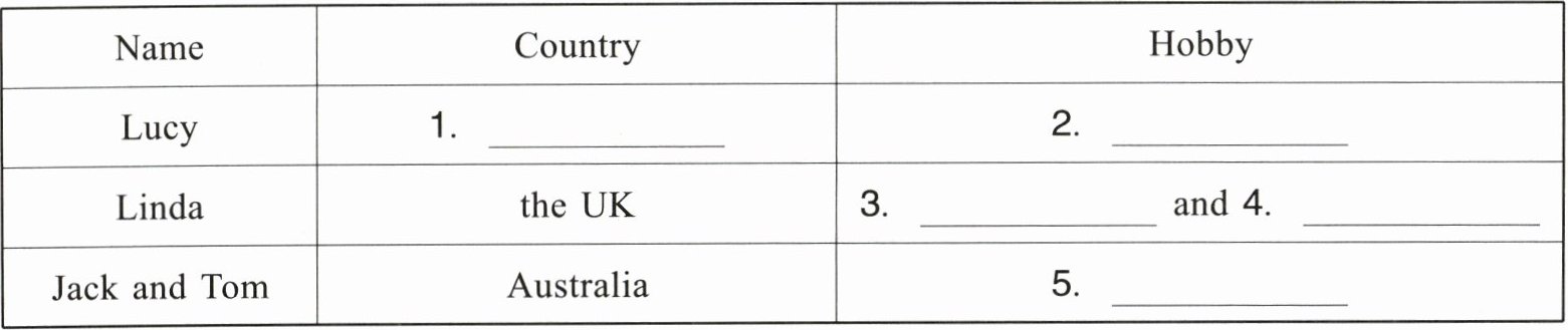 五、听录音,根据录音内容完成表格。(听三遍)(10分)