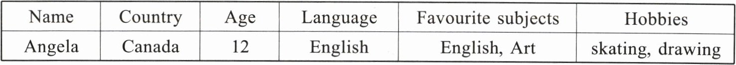 十二、假如你是刘云,你有一个网友,她叫安吉拉(Angela),请根据提示写一篇介绍她的小短文。不少于40个单词。(5分)