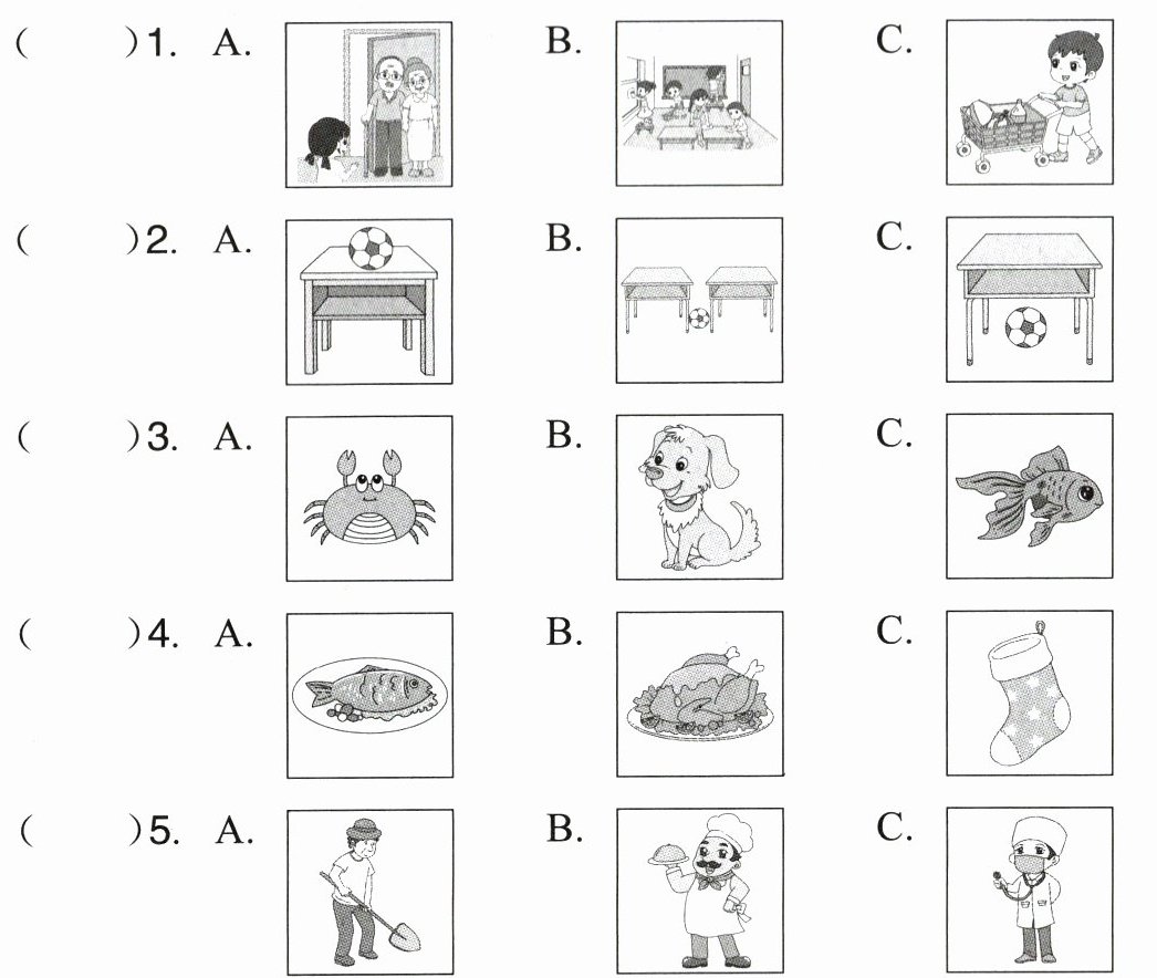 一、听录音,选出与所听内容相符的图片。(听两遍)(5分)