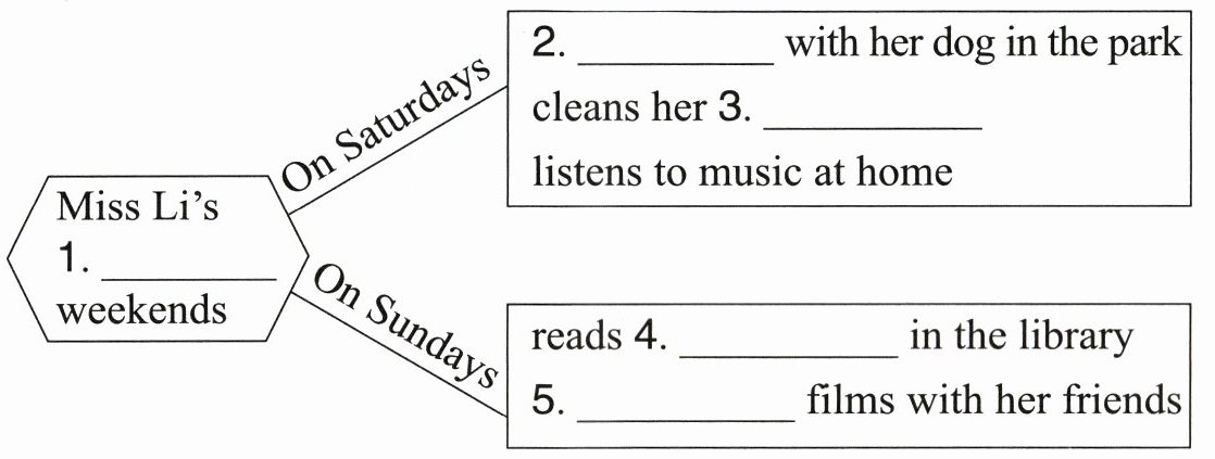 五、听录音,根据所听内容完成思维导图。(听三遍)(5分)