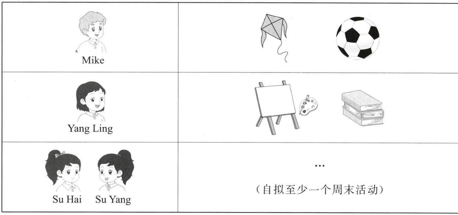 often fly a kite in the park. Sometimes I play football with my friends. Yang Ling usually draws pictures at home. She often reads some interesting books too. Su Hai and Su Yang like singing. They always sing songs together at weekends.