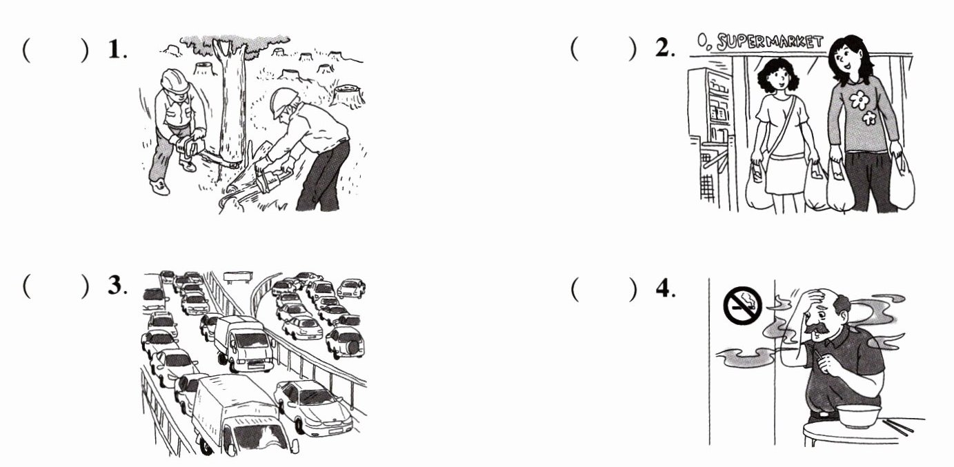 四、看图,从方框中选择合适的词组或句子。