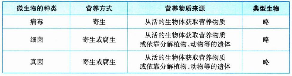 3. 请分析病毒、细菌和真菌的营养方式,并填写下表。