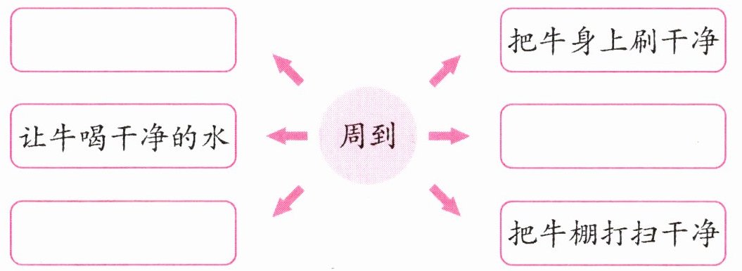 2. 牛郎照看那头牛挺周到,他做了哪些事情? 填写空格。