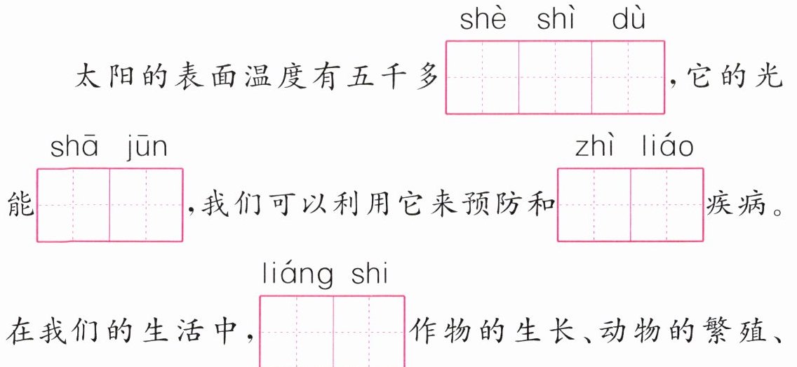 答案:1. 摄氏度 杀菌 治疗 粮食 煤炭 2. 意 声 左 右 示例:指动物通过某种方式产生后代来延续和繁衍种群