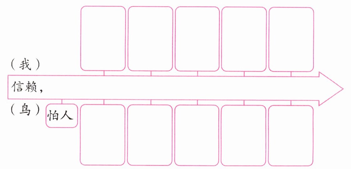 二 阅读课文,梳理珍珠鸟从怕人到信赖人的过程,完成下面的思维导图。