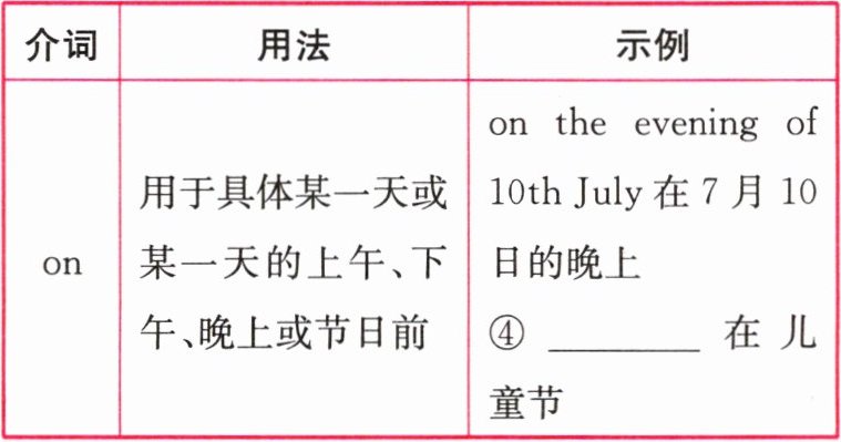 |on|用于具体某一天或某一天的上午、下午、晚上或节日前|on the evening of 10th July 在 7 月 10 日的晚上