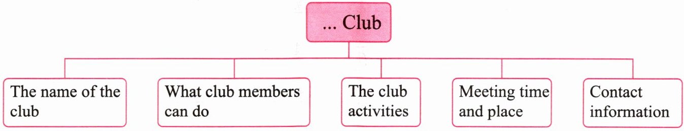 任务情境:假如你想创建一家俱乐部,请为你的俱乐部制作一张海报。形式上参考教材第 58 页 3b。请运用本单元所学知识,参考下面的思维导图,完成宣传海报。张贴海报后假如有学生来应聘,请设计一下面试问题,为俱乐部招收合格的成员。