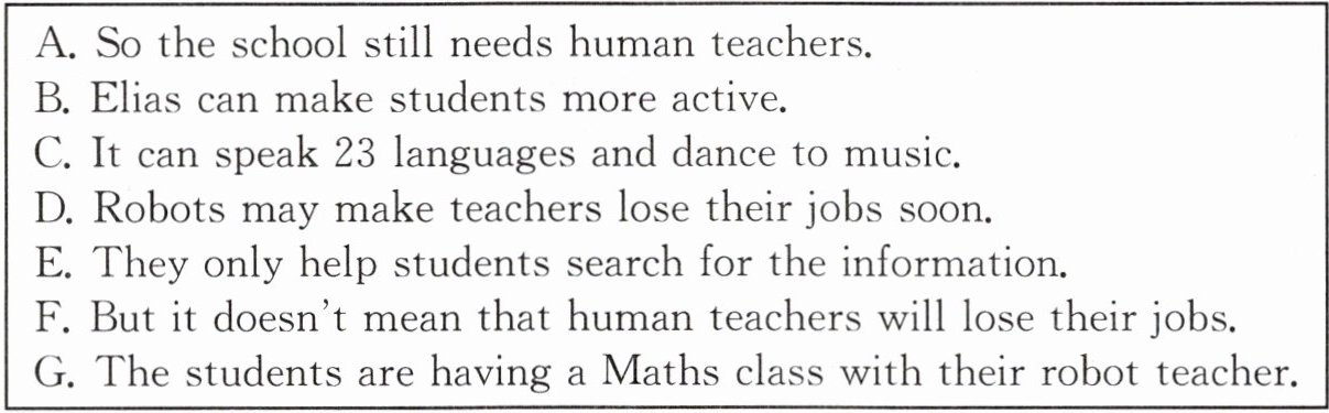 机器人老师被用来帮助提高学习效果。4. 机器人可以教得很好,但它们无法维持课堂秩序。而且,当学生在学习某样东西有困难时,机器人老师常常注意不到。5.