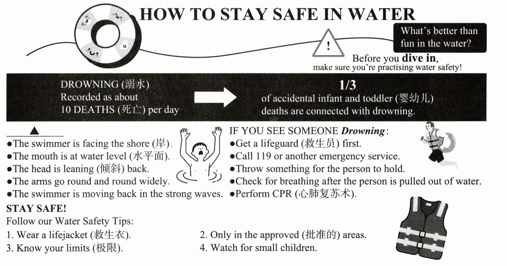 A. Signs of Drowning. B. Dos and Don’ts in the Water.