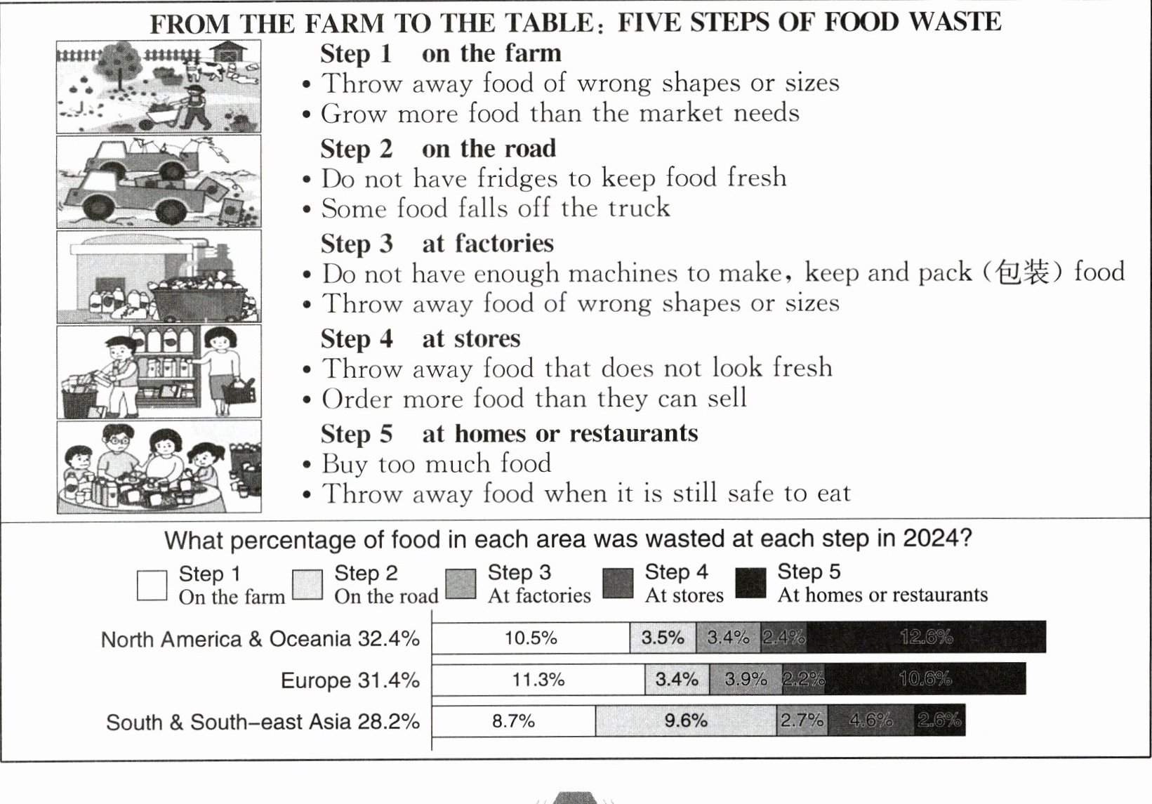 ( )4. 从关于食物浪费的图片中我们能了解到什么?