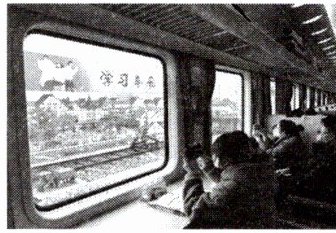 In some carriages, some seats (座位) are replaced (替换) with 2__________ and chairs. We 3__________ these carriages “study carriages”. On the train, we can 4__________ the Chinese characters (汉字) yuyue. They mean “travelling and reading happily”. We can also see other encouraging (鼓励的) 5__________.