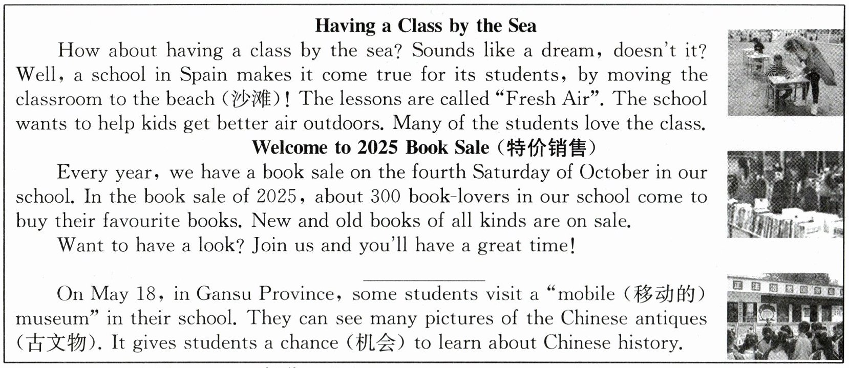 "Why not invite (邀请) some kids to the next game?" Dad asks. "We will take them with us."