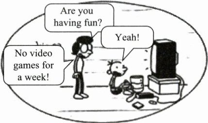 D.Mom doesn't want the boy to play video games