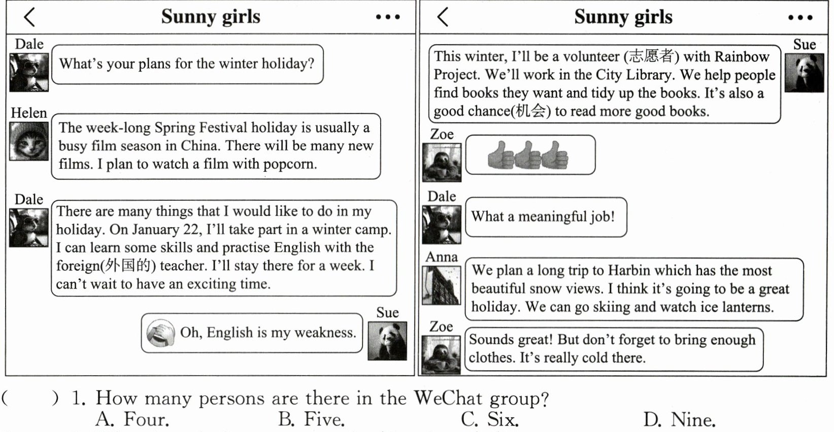 The tree was almost as tall as the room, and the Tree Top Star was in its place. A few parts of the tree were a little messy, and it was bare (光秃秃的) in the middle (中间). But the tree made the room warm and full of the happy smell of Christmas.