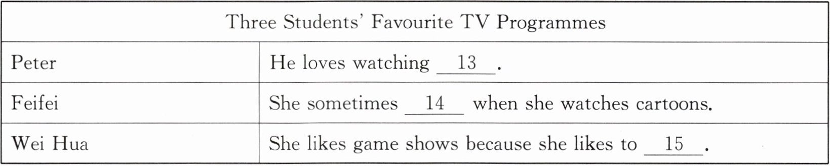 听第一篇短文,回答第13—15小题。请根据短文内容,选择正确答案,完成信息记录表。答题完毕,请等待“嘀”的信号,进入下一篇短文。