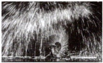 (throw) hot molten iron(熔化的铁)against cold walls. The molten iron is about 1 600℃ — it's so dangerous. The 2.