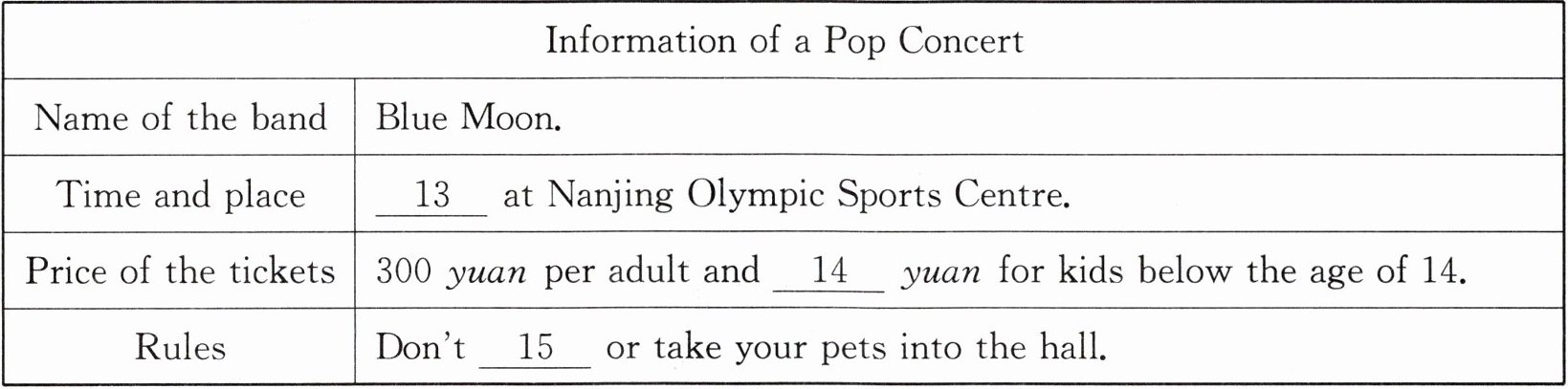 听第一篇短文,回答第13—15小题。请根据短文内容,选择正确答案,完成信息记录表。答题完毕,请等待“嘀”的信号,进入下一篇短文。