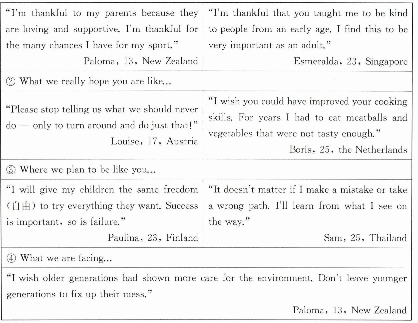 年轻人想对他们的长辈说些什么呢?以下是来自世界各地的一些年轻人的回答。