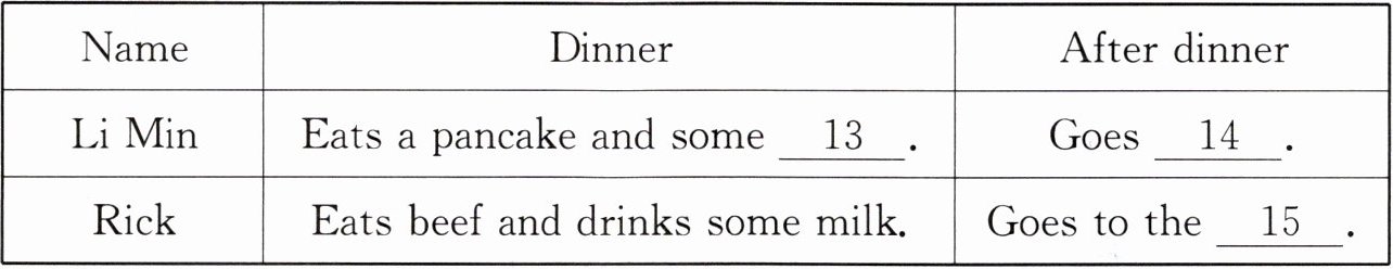 )18. What does Wendy have for breakfast?