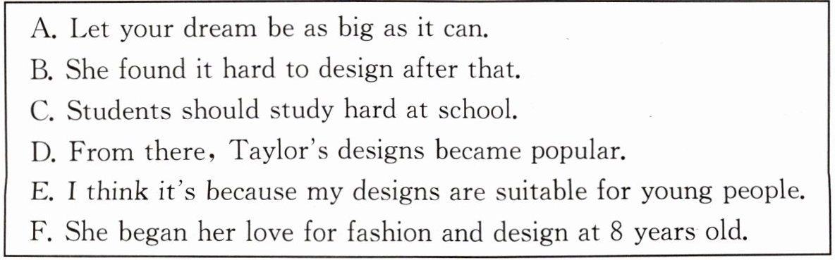 They're not too mature(成熟的),” says Taylor. When asked what she'd like to tell other young people,she says it's important to dream. “Don't limit(限制)yourself,” says Taylor. “(4)