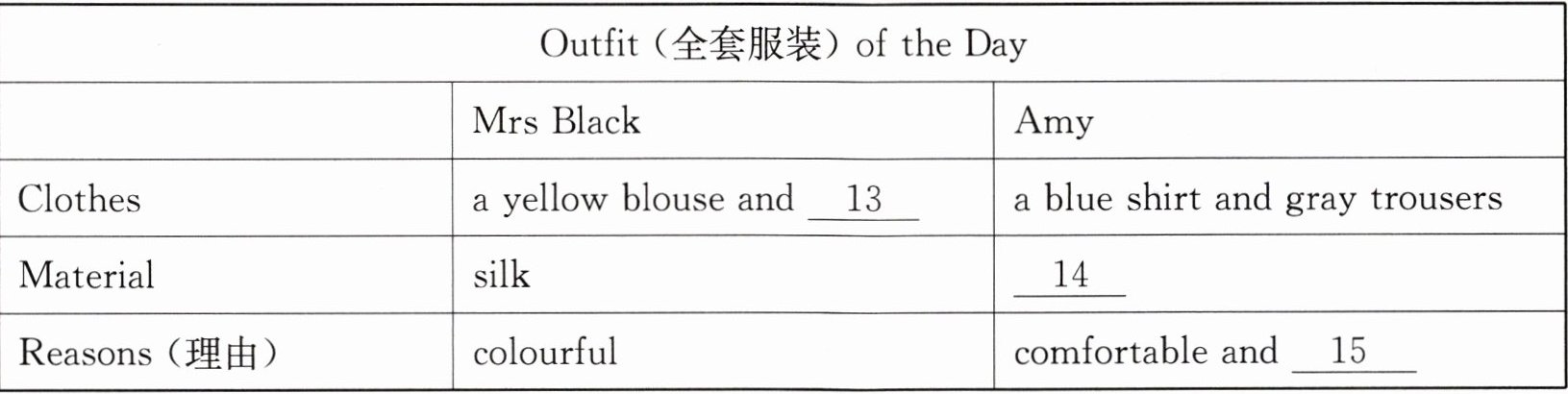 )13. A. a yellow skirt