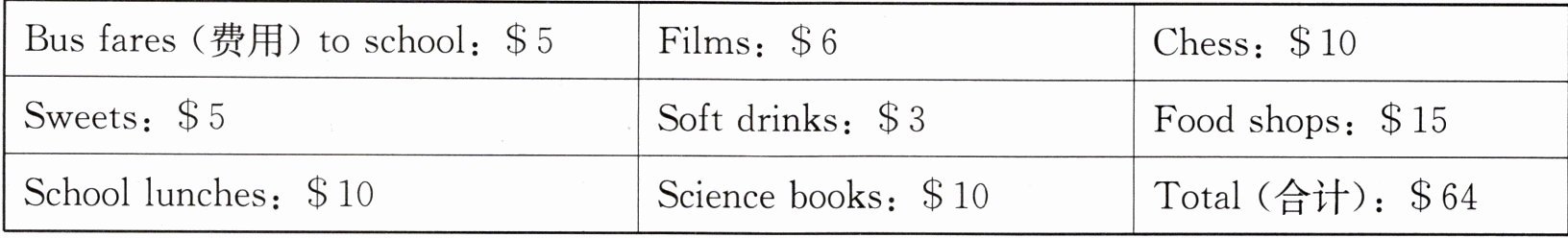 )3. If the student goes without films and soft drinks for three weeks in a row (连续),he can save _________.