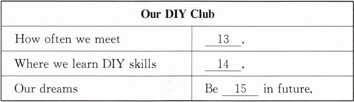 听第一篇短文,回答第13—15小题。请根据短文内容,选择正确答案,完成信息记录表。